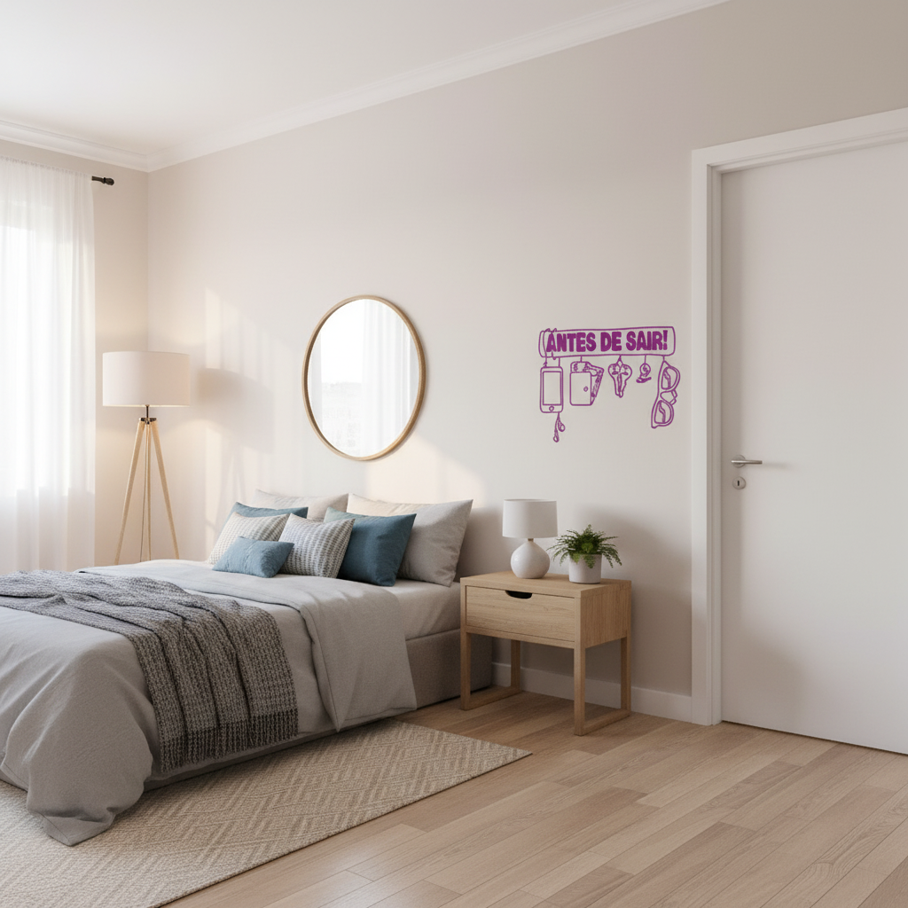 Adesivo de Parede Antes de Sair Evite esquecer seus pertences essenciais antes de sair de casa com o encantador Adesivo de Parede Antes de Sair. Com um design que inclui celular, carteira, chaves e óculos, este adesivo vai te lembrar de conferir seus itens indispensáveis antes de partir. Nunca mais se preocupe em voltar para casa por ter esquecido algo importante. Garanta já o seu Adesivo de Parede Antes de Sair e saia tranquilo! 0 avaliações | Dê a sua avaliação! Referência: 2195 Cor*: Tamanho Pequeno Medio Grande Extra Grande Na compra deste produto você irá ganhar R$ 1,00 em cash back R$ 19,90 ou até 1x sem juros de R$ 19,90 ou em até 4x de R$ 5,49 no cartão Comprar Esse produto encontra-se indisponível. Deixe seu contato que avisaremos quando chegar. Seu nome: Seu e-mail: Desejo receber e-mails com lançamentos e promoções. Avise-me quando disponível Boleto Bancário Parcelas 1x de R$ 20,90 sem juros 2x de R$ 10,76 3x de R$ 7,25 4x de R$ 5,49 Opções de pagamento Detalhes Entrega imediata Indicar este produto Deixar comentário Detalhes do Produto Aplicação Rápida e Prática Transforme com Facilidade Renove seus ambientes sem esforço. Nossos adesivos oferecem uma aplicação fácil e rápida, proporcionando uma transformação instantânea. Decore com Arte Parece Pintura, sem Gastos e Sujeira Transforme o ambiente como se fosse uma obra de arte, sem a necessidade de pintores, tinta ou bagunça. Adesivos: a opção prática para uma decoração deslumbrante. Cores Vibrantes Viva as Cores Escolha entre uma variedade de cores vibrantes para adicionar vida e personalidade no ambiente! Explore Nossa Paleta de Cores Opções Infinitas Conheça nossa ampla tabela de cores, oferecendo opções para que você dê vida à sua criatividade. Encontre a cor perfeita para sua decoração. Durabilidade e Resistência Decore sem Preocupações Nossos adesivos são duráveis, laváveis, resistem a sol e chuva. Ainda assim, evite produtos químicos agressivos, como álcool, para uma decoração que dura por muito tempo. Assista e Aprenda Aplicação Passo a Passo Confira neste vídeo um guia passo a passo para aplicar nossos adesivos de parede, proporcionando uma decoração descomplicada e cheia de estilo. Dúvidas Frequentes O Adesivo Decorativo é fácil de aplicar? Sim, os adesivos de parede da Fran Adesivos são projetados para uma aplicação fácil e rápida. Não é necessário ter experiência, tornando o processo acessível para qualquer pessoa. Tem perigo do Adesivo Decorativo amassar no transporte? Não, garantimos a integridade do adesivo durante o transporte, utilizando uma embalagem especial em forma de tubo para proteção adequada. Como devo aplicar o Adesivo Decorativo? Enviamos um manual de aplicação junto com o produto e disponibilizamos vídeos instrutivos no site para orientar o processo de aplicação de forma clara e detalhada. Preciso de espátula para aplicar o Adesivo Decorativo? Embora a espátula seja útil, ela não é obrigatória. Pode-se usar uma flanela ou um cartão de crédito para aplicar o adesivo com eficácia. Qual a espessura do material? A espessura do adesivo é de 0,10mm, garantindo qualidade e durabilidade. Esse Adesivo Decorativo é fosco ou brilhante? O Adesivo Decorativo é semibrilho ou fosco, dependendo do modelo escolhido. Minha parede não é lisa, posso aplicar? A parede não precisa ser completamente lisa, mas é necessário que esteja bem rebocada e pintada. Não recomendamos a aplicação em superfícies com textura ou grafiato. Adere bem em parede de gesso sem pintura e sem massa corrida? Sim, o adesivo de parede tem boa aderência em gesso, mesmo quando não está pintado ou sem massa corrida. O Adesivo Decorativo pode ser molhado? Sim, os adesivos são resistentes à umidade, permitindo sua aplicação em áreas suscetíveis a respingos ou limpeza ocasional. Posso usar o Adesivo Decorativo em áreas externas expostas ao sol? Sim, nossos adesivos foram projetados para resistir à exposição solar, mantendo a qualidade e a durabilidade mesmo em ambientes externos. Há alguma recomendação específica para prolongar a vida útil do adesivo? Evite o contato com produtos químicos agressivos e limpe o adesivo apenas com um pano úmido para garantir uma vida útil mais longa.