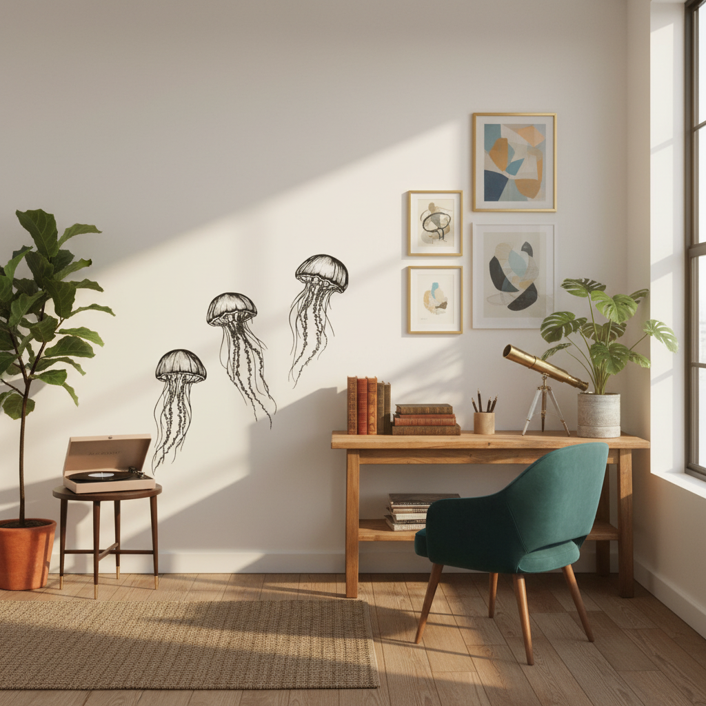 + 1 Adesivo de Parede Artístico de Águas Vivas Adicione um toque contemporâneo com este adesivo de águas vivas, perfeito para salas e quartos. Seu design elegante transforma qualquer espaço, trazendo leveza e um estilo artístico único. 0 avaliações | Dê a sua avaliação! Referência: 56749 Tamanho Pequeno Medio Grande Extra Grande Especial Gigante Na compra deste produto você irá ganhar R$ 1,00 em cash back R$ 19,90 ou até 1x sem juros de R$ 19,90 ou em até 4x de R$ 5,49 no cartão Comprar Esse produto encontra-se indisponível. Deixe seu contato que avisaremos quando chegar. Seu nome: Seu e-mail: Desejo receber e-mails com lançamentos e promoções. Avise-me quando disponível Boleto Bancário Parcelas 1x de R$ 20,90 sem juros 2x de R$ 10,76 3x de R$ 7,25 4x de R$ 5,49 Opções de pagamento Detalhes Indicar este produto Deixar comentário Detalhes do Produto DescriçãoNossos adesivos de parede decorativos são impressos em vinil branco fosco de alta qualidade, com cores vivas e definição impecável. Acompanha máscara de transferência que facilita a aplicação, evitando rugas e bolhas. É muito fácil de aplicar: basta seguir o manual de instruções e qualquer pessoa consegue fazer.Qualidade e confiançaJá realizamos mais de 1.000.000 de vendas e somos especialistas em adesivos decorativos. Garantimos um produto confiável, resistente e feito para transformar qualquer ambiente em minutos.EspecificaçõesMaterial: vinil branco foscoCola de alta fixaçãoImpressão em alta definiçãoAcompanha máscara de transferênciaAplicação fácil e sem sujeiraOnde aplicarAdere a qualquer superfície lisa, como paredes, portas, vidros, madeira, gesso, piso e azulejos.