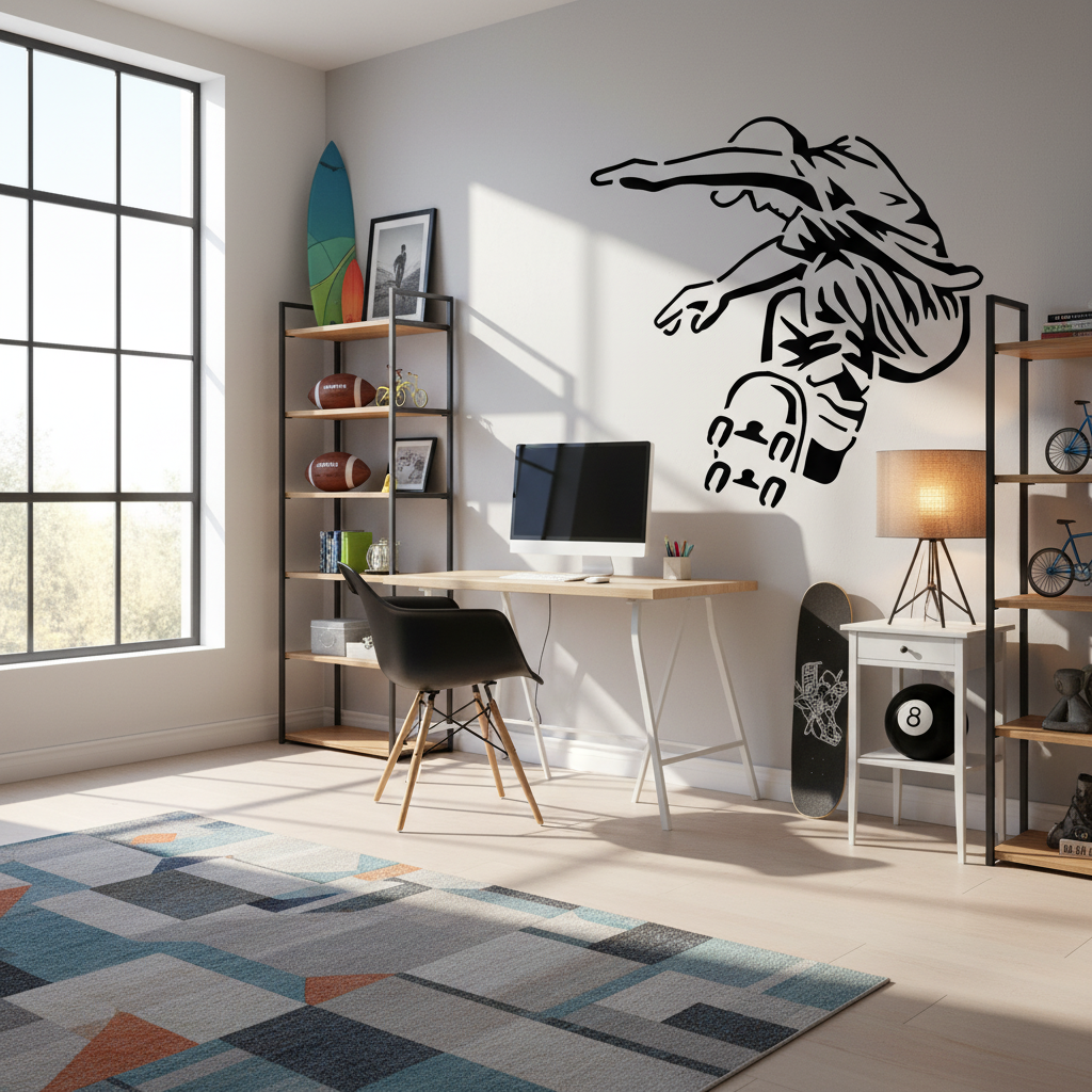 Adesivo de Parede Esportes Skatista SK8 Transforme seu espaço em um verdadeiro cenário urbano com o Adesivo de Parede Esportes Skatista SK8. Ideal para os amantes do skate, esse adesivo traz toda a energia e atitude desse esporte radical para a sua decoração. Mostre a sua paixão pelo skate de forma criativa e econômica com este item exclusivo. Garanta já o seu e deixe o ambiente com a sua cara! 0 avaliações | Dê a sua avaliação! Referência: 15618 Cor*: Posicao*: Tamanho Pequeno Medio Grande Extra Grande Especial Na compra deste produto você irá ganhar R$ 2,00 em cash back R$ 39,90 ou até 1x sem juros de R$ 39,90 ou em até 9x de R$ 5,13 no cartão Comprar Esse produto encontra-se indisponível. Deixe seu contato que avisaremos quando chegar. Seu nome: Seu e-mail: Desejo receber e-mails com lançamentos e promoções. Avise-me quando disponível Boleto Bancário R$ 41,90 à vista Parcelas 1x de R$ 41,90 sem juros 2x de R$ 21,58 3x de R$ 14,53 4x de R$ 11,00 5x de R$ 8,89 6x de R$ 7,48 7x de R$ 6,47 8x de R$ 5,72 9x de R$ 5,13 Opções de pagamento Detalhes Entrega imediata Indicar este produto Deixar comentário Detalhes do Produto DescriçãoNossos adesivos de parede decorativos são impressos em vinil branco fosco de alta qualidade, com cores vivas e definição impecável. Acompanha máscara de transferência que facilita a aplicação, evitando rugas e bolhas. É muito fácil de aplicar: basta seguir o manual de instruções e qualquer pessoa consegue fazer.Qualidade e confiançaJá realizamos mais de 1.000.000 de vendas e somos especialistas em adesivos decorativos. Garantimos um produto confiável, resistente e feito para transformar qualquer ambiente em minutos.EspecificaçõesMaterial: vinil branco foscoCola de alta fixaçãoImpressão em alta definiçãoAcompanha máscara de transferênciaAplicação fácil e sem sujeiraOnde aplicarAdere a qualquer superfície lisa, como paredes, portas, vidros, madeira, gesso, piso e azulejos.