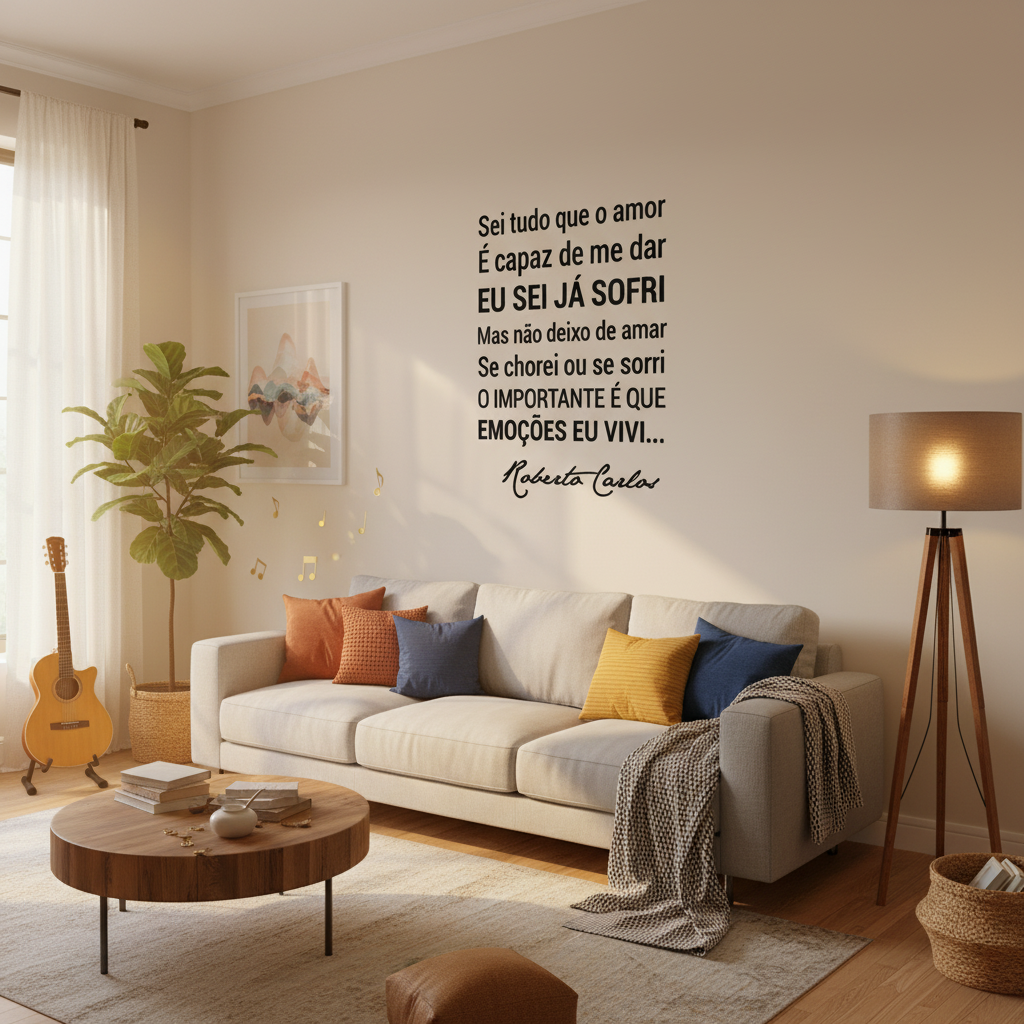 Adesivo de parede Frase Roberto Carlos Decore sua parede com estilo e emoção com o Adesivo de Parede Frase Roberto Carlos. Transforme seu ambiente em um espaço reflexivo e tranquilo, com um toque especial da música "Emoções" do rei Roberto Carlos. Surpreenda suas visitas com esse adesivo que vai encantar a todos. Adquira já o seu adesivo de parede e traga toda a poesia e magia das canções do ícone da música brasileira para o seu lar. Aproveite a oportunidade e deixe sua casa ainda mais acolhedora e cheia de personalidade. 7 avaliações | Dê a sua avaliação! Referência: 310 Cor*: Tamanho Pequeno Medio Grande Na compra deste produto você irá ganhar R$ 1,00 em cash back R$ 19,90 ou até 1x sem juros de R$ 19,90 ou em até 4x de R$ 5,49 no cartão Comprar Esse produto encontra-se indisponível. Deixe seu contato que avisaremos quando chegar. Seu nome: Seu e-mail: Desejo receber e-mails com lançamentos e promoções. Avise-me quando disponível Boleto Bancário Parcelas 1x de R$ 20,90 sem juros 2x de R$ 10,76 3x de R$ 7,25 4x de R$ 5,49 Opções de pagamento Detalhes Entrega imediata Indicar este produto Deixar comentário Detalhes do Produto Aplicação Rápida e Prática Transforme com Facilidade Renove seus ambientes sem esforço. Nossos adesivos oferecem uma aplicação fácil e rápida, proporcionando uma transformação instantânea. Decore com Arte Parece Pintura, sem Gastos e Sujeira Transforme o ambiente como se fosse uma obra de arte, sem a necessidade de pintores, tinta ou bagunça. Adesivos: a opção prática para uma decoração deslumbrante. Cores Vibrantes Viva as Cores Escolha entre uma variedade de cores vibrantes para adicionar vida e personalidade no ambiente! Explore Nossa Paleta de Cores Opções Infinitas Conheça nossa ampla tabela de cores, oferecendo opções para que você dê vida à sua criatividade. Encontre a cor perfeita para sua decoração. Durabilidade e Resistência Decore sem Preocupações Nossos adesivos são duráveis, laváveis, resistem a sol e chuva. Ainda assim, evite produtos químicos agressivos, como álcool, para uma decoração que dura por muito tempo. Assista e Aprenda Aplicação Passo a Passo Confira neste vídeo um guia passo a passo para aplicar nossos adesivos de parede, proporcionando uma decoração descomplicada e cheia de estilo. Dúvidas Frequentes O Adesivo Decorativo é fácil de aplicar? Sim, os adesivos de parede da Fran Adesivos são projetados para uma aplicação fácil e rápida. Não é necessário ter experiência, tornando o processo acessível para qualquer pessoa. Tem perigo do Adesivo Decorativo amassar no transporte? Não, garantimos a integridade do adesivo durante o transporte, utilizando uma embalagem especial em forma de tubo para proteção adequada. Como devo aplicar o Adesivo Decorativo? Enviamos um manual de aplicação junto com o produto e disponibilizamos vídeos instrutivos no site para orientar o processo de aplicação de forma clara e detalhada. Preciso de espátula para aplicar o Adesivo Decorativo? Embora a espátula seja útil, ela não é obrigatória. Pode-se usar uma flanela ou um cartão de crédito para aplicar o adesivo com eficácia. Qual a espessura do material? A espessura do adesivo é de 0,10mm, garantindo qualidade e durabilidade. Esse Adesivo Decorativo é fosco ou brilhante? O Adesivo Decorativo é semibrilho ou fosco, dependendo do modelo escolhido. Minha parede não é lisa, posso aplicar? A parede não precisa ser completamente lisa, mas é necessário que esteja bem rebocada e pintada. Não recomendamos a aplicação em superfícies com textura ou grafiato. Adere bem em parede de gesso sem pintura e sem massa corrida? Sim, o adesivo de parede tem boa aderência em gesso, mesmo quando não está pintado ou sem massa corrida. O Adesivo Decorativo pode ser molhado? Sim, os adesivos são resistentes à umidade, permitindo sua aplicação em áreas suscetíveis a respingos ou limpeza ocasional. Posso usar o Adesivo Decorativo em áreas externas expostas ao sol? Sim, nossos adesivos foram projetados para resistir à exposição solar, mantendo a qualidade e a durabilidade mesmo em ambientes externos. Há alguma recomendação específica para prolongar a vida útil do adesivo? Evite o contato com produtos químicos agressivos e limpe o adesivo apenas com um pano úmido para garantir uma vida útil mais longa.