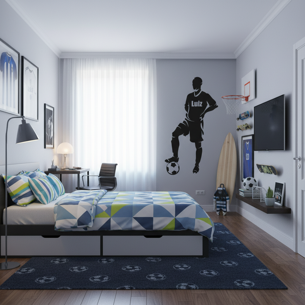 Adesivo de Parede Jogador de futebol com nome personalizado Transforme o quarto do seu pequeno grande atleta em um verdadeiro campo de futebol com o Adesivo de Parede Jogador de futebol personalizado. Personalize a camisa do jogador com o nome dele, criando uma decoração única e cheia de personalidade. Além de incentivar a prática esportiva, esse adesivo vai deixar o ambiente mais dinâmico e cheio de energia. Ideal para apaixonados por futebol de todas as idades, este adesivo é perfeito para transformar o espaço e inspirar grandes jogadas. Adquira já o seu e traga o espírito esportivo para dentro de casa! 41 avaliações | Dê a sua avaliação! Referência: 2631 Cor*: INFORME O NOME PARA O ADESIVO:: Tamanho Pequeno Medio Grande Extra Grande Especial Na compra deste produto você irá ganhar R$ 1,50 em cash back R$ 29,90 ou até 1x sem juros de R$ 29,90 ou em até 6x de R$ 5,60 no cartão Comprar Esse produto encontra-se indisponível. Deixe seu contato que avisaremos quando chegar. Seu nome: Seu e-mail: Desejo receber e-mails com lançamentos e promoções. Avise-me quando disponível Boleto Bancário R$ 31,40 à vista Parcelas 1x de R$ 31,40 sem juros 2x de R$ 16,17 3x de R$ 10,89 4x de R$ 8,24 5x de R$ 6,66 6x de R$ 5,60 Opções de pagamento Detalhes Entrega imediata Indicar este produto Deixar comentário Detalhes do Produto Aplicação Rápida e Prática Transforme com Facilidade Renove seus ambientes sem esforço. Nossos adesivos oferecem uma aplicação fácil e rápida, proporcionando uma transformação instantânea. Decore com Arte Parece Pintura, sem Gastos e Sujeira Transforme o ambiente como se fosse uma obra de arte, sem a necessidade de pintores, tinta ou bagunça. Adesivos: a opção prática para uma decoração deslumbrante. Cores Vibrantes Viva as Cores Escolha entre uma variedade de cores vibrantes para adicionar vida e personalidade no ambiente! Explore Nossa Paleta de Cores Opções Infinitas Conheça nossa ampla tabela de cores, oferecendo opções para que você dê vida à sua criatividade. Encontre a cor perfeita para sua decoração. Durabilidade e Resistência Decore sem Preocupações Nossos adesivos são duráveis, laváveis, resistem a sol e chuva. Ainda assim, evite produtos químicos agressivos, como álcool, para uma decoração que dura por muito tempo. Assista e Aprenda Aplicação Passo a Passo Confira neste vídeo um guia passo a passo para aplicar nossos adesivos de parede, proporcionando uma decoração descomplicada e cheia de estilo. Dúvidas Frequentes O Adesivo Decorativo é fácil de aplicar? Sim, os adesivos de parede da Fran Adesivos são projetados para uma aplicação fácil e rápida. Não é necessário ter experiência, tornando o processo acessível para qualquer pessoa. Tem perigo do Adesivo Decorativo amassar no transporte? Não, garantimos a integridade do adesivo durante o transporte, utilizando uma embalagem especial em forma de tubo para proteção adequada. Como devo aplicar o Adesivo Decorativo? Enviamos um manual de aplicação junto com o produto e disponibilizamos vídeos instrutivos no site para orientar o processo de aplicação de forma clara e detalhada. Preciso de espátula para aplicar o Adesivo Decorativo? Embora a espátula seja útil, ela não é obrigatória. Pode-se usar uma flanela ou um cartão de crédito para aplicar o adesivo com eficácia. Qual a espessura do material? A espessura do adesivo é de 0,10mm, garantindo qualidade e durabilidade. Esse Adesivo Decorativo é fosco ou brilhante? O Adesivo Decorativo é semibrilho ou fosco, dependendo do modelo escolhido. Minha parede não é lisa, posso aplicar? A parede não precisa ser completamente lisa, mas é necessário que esteja bem rebocada e pintada. Não recomendamos a aplicação em superfícies com textura ou grafiato. Adere bem em parede de gesso sem pintura e sem massa corrida? Sim, o adesivo de parede tem boa aderência em gesso, mesmo quando não está pintado ou sem massa corrida. O Adesivo Decorativo pode ser molhado? Sim, os adesivos são resistentes à umidade, permitindo sua aplicação em áreas suscetíveis a respingos ou limpeza ocasional. Posso usar o Adesivo Decorativo em áreas externas expostas ao sol? Sim, nossos adesivos foram projetados para resistir à exposição solar, mantendo a qualidade e a durabilidade mesmo em ambientes externos. Há alguma recomendação específica para prolongar a vida útil do adesivo? Evite o contato com produtos químicos agressivos e limpe o adesivo apenas com um pano úmido para garantir uma vida útil mais longa.