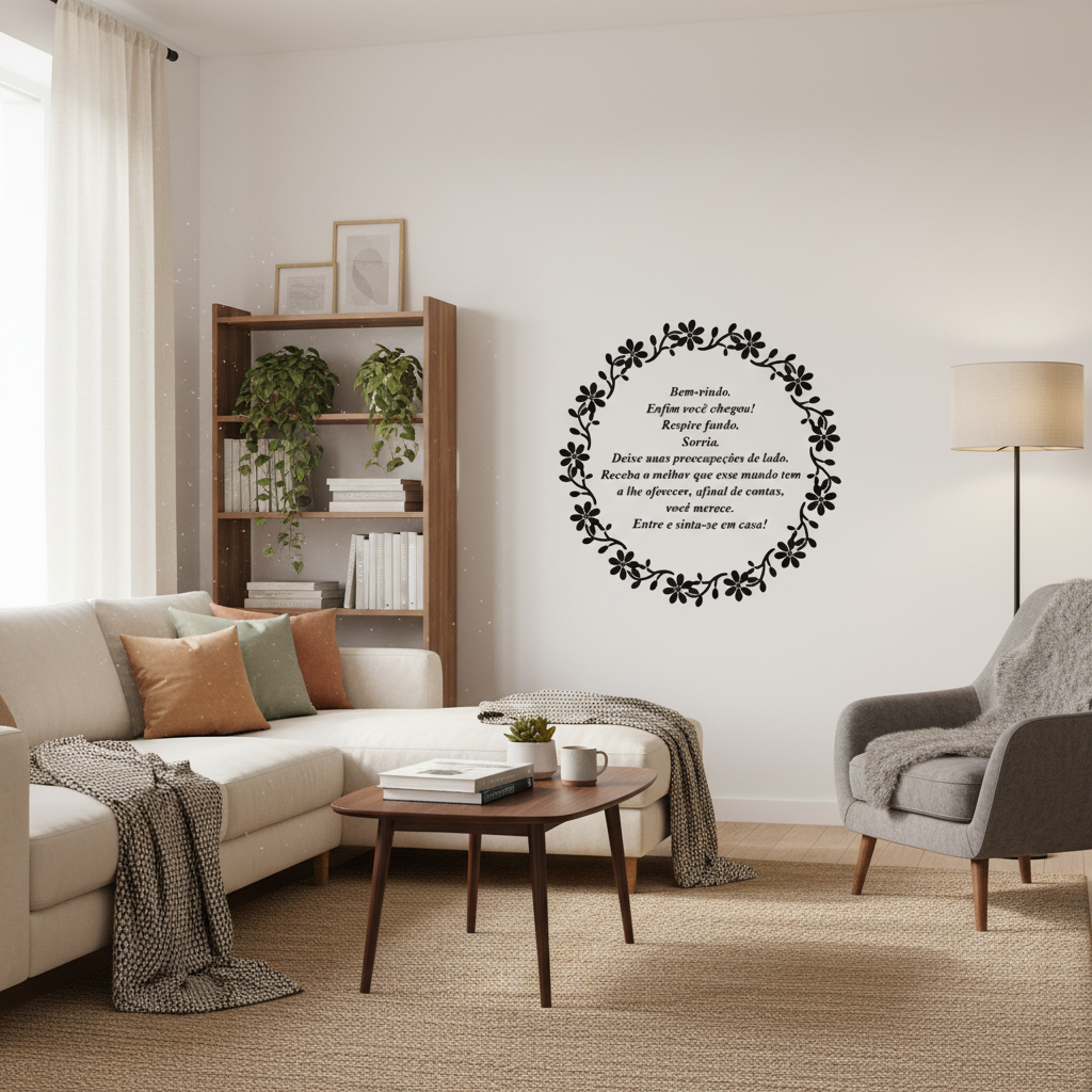 Adesivo de Parede Mandala Cor Única com Frase 1