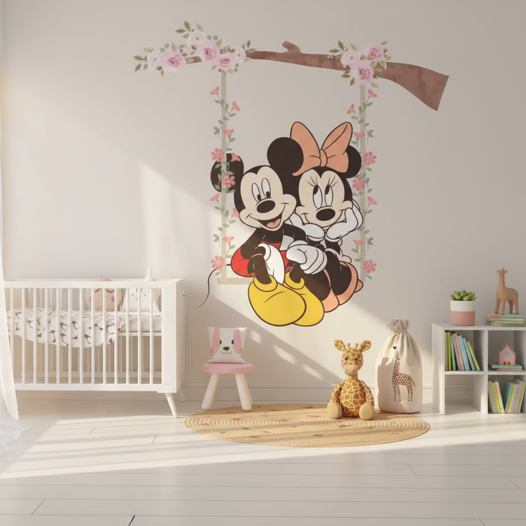 Encante o ambiente do quarto infantil com o Adesivo de Parede Mickey e Minnie no Balanço. Os amados personagens da Disney ganham vida em detalhes encantadores, trazendo alegria e magia ao espaço. Com elementos como flores, balanço e uma árvore, a decoração se torna ainda mais especial. Além de alegrar, o adesivo de parede também proporciona praticidade na aplicação, transformando o ambiente em um espaço cheio de amor e calmaria. Adicione um toque de encanto da Disney à decoração com este adesivo especial.