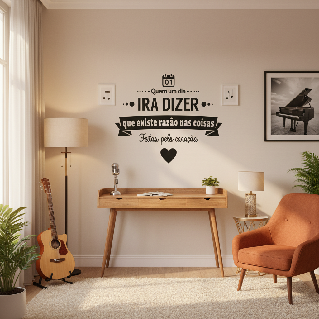 Adesivo de Parede Quem um dia ira dizer que existe razão... Este adesivo de parede foi inspirado na música "Eduardo e Mônica" da banda clássica Legião Urbana, conhecida por suas composições que emocionam gerações. Com a frase "Quem um dia irá dizer que existe razão...", este adesivo traz toda a poesia e sentimento da música para a decoração da sua casa. Ideal para quem busca uma decoração única e cheia de significado, este adesivo de parede é perfeito para trazer personalidade ao ambiente. Adquira já o seu e transforme sua casa em um espaço cheio de amor e inspiração. Perfeito para fãs da banda e amantes de música que buscam uma decoração especial e marcante. 4 avaliações | Dê a sua avaliação! Referência: 3916 Cor*: Tamanho Pequeno Medio Grande Extra Grande Especial Na compra deste produto você irá ganhar R$ 1,50 em cash back R$ 29,90 ou até 1x sem juros de R$ 29,90 ou em até 6x de R$ 5,60 no cartão Comprar Esse produto encontra-se indisponível. Deixe seu contato que avisaremos quando chegar. Seu nome: Seu e-mail: Desejo receber e-mails com lançamentos e promoções. Avise-me quando disponível Boleto Bancário R$ 31,40 à vista Parcelas 1x de R$ 31,40 sem juros 2x de R$ 16,17 3x de R$ 10,89 4x de R$ 8,24 5x de R$ 6,66 6x de R$ 5,60 Opções de pagamento Detalhes Entrega imediata Indicar este produto Deixar comentário Detalhes do Produto Aplicação Rápida e Prática Transforme com Facilidade Renove seus ambientes sem esforço. Nossos adesivos oferecem uma aplicação fácil e rápida, proporcionando uma transformação instantânea. Decore com Arte Parece Pintura, sem Gastos e Sujeira Transforme o ambiente como se fosse uma obra de arte, sem a necessidade de pintores, tinta ou bagunça. Adesivos: a opção prática para uma decoração deslumbrante. Cores Vibrantes Viva as Cores Escolha entre uma variedade de cores vibrantes para adicionar vida e personalidade no ambiente! Explore Nossa Paleta de Cores Opções Infinitas Conheça nossa ampla tabela de cores, oferecendo opções para que você dê vida à sua criatividade. Encontre a cor perfeita para sua decoração. Durabilidade e Resistência Decore sem Preocupações Nossos adesivos são duráveis, laváveis, resistem a sol e chuva. Ainda assim, evite produtos químicos agressivos, como álcool, para uma decoração que dura por muito tempo. Assista e Aprenda Aplicação Passo a Passo Confira neste vídeo um guia passo a passo para aplicar nossos adesivos de parede, proporcionando uma decoração descomplicada e cheia de estilo. Dúvidas Frequentes O Adesivo Decorativo é fácil de aplicar? Sim, os adesivos de parede da Fran Adesivos são projetados para uma aplicação fácil e rápida. Não é necessário ter experiência, tornando o processo acessível para qualquer pessoa. Tem perigo do Adesivo Decorativo amassar no transporte? Não, garantimos a integridade do adesivo durante o transporte, utilizando uma embalagem especial em forma de tubo para proteção adequada. Como devo aplicar o Adesivo Decorativo? Enviamos um manual de aplicação junto com o produto e disponibilizamos vídeos instrutivos no site para orientar o processo de aplicação de forma clara e detalhada. Preciso de espátula para aplicar o Adesivo Decorativo? Embora a espátula seja útil, ela não é obrigatória. Pode-se usar uma flanela ou um cartão de crédito para aplicar o adesivo com eficácia. Qual a espessura do material? A espessura do adesivo é de 0,10mm, garantindo qualidade e durabilidade. Esse Adesivo Decorativo é fosco ou brilhante? O Adesivo Decorativo é semibrilho ou fosco, dependendo do modelo escolhido. Minha parede não é lisa, posso aplicar? A parede não precisa ser completamente lisa, mas é necessário que esteja bem rebocada e pintada. Não recomendamos a aplicação em superfícies com textura ou grafiato. Adere bem em parede de gesso sem pintura e sem massa corrida? Sim, o adesivo de parede tem boa aderência em gesso, mesmo quando não está pintado ou sem massa corrida. O Adesivo Decorativo pode ser molhado? Sim, os adesivos são resistentes à umidade, permitindo sua aplicação em áreas suscetíveis a respingos ou limpeza ocasional. Posso usar o Adesivo Decorativo em áreas externas expostas ao sol? Sim, nossos adesivos foram projetados para resistir à exposição solar, mantendo a qualidade e a durabilidade mesmo em ambientes externos. Há alguma recomendação específica para prolongar a vida útil do adesivo? Evite o contato com produtos químicos agressivos e limpe o adesivo apenas com um pano úmido para garantir uma vida útil mais longa.