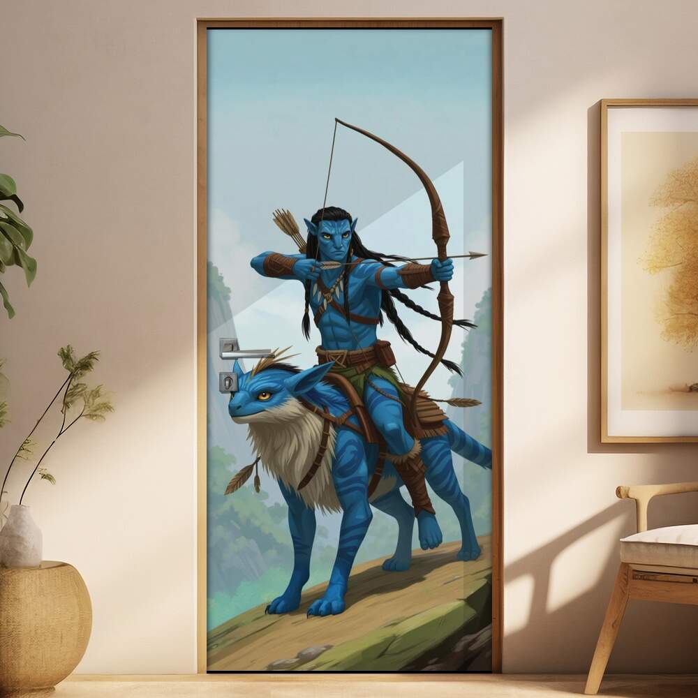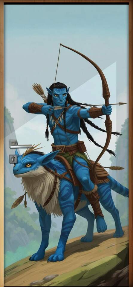 O exemplo mostrado é de uma porta com 90cm por 210cm, se sua porta tiver outra dimensão, não achatamos a imagem, porque isso a deixaria deformada, adaptaremos para encaixar em sua porta como neste exemplo