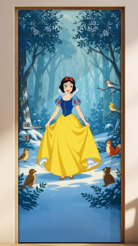 O exemplo mostrado é de uma porta com 90cm por 210cm, se sua porta tiver outra dimensão, não achatamos a imagem, porque isso a deixaria deformada, adaptaremos para encaixar em sua porta como neste exemplo