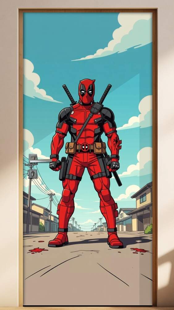O exemplo mostrado é de uma porta com 90cm por 210cm, se sua porta tiver outra dimensão, não achatamos a imagem, porque isso a deixaria deformada, adaptaremos para encaixar em sua porta como neste exemplo