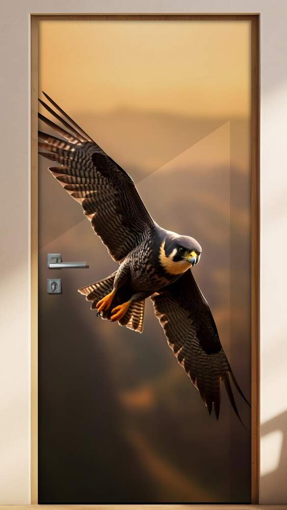 Adesivo de Porta Falcão Peregrino em Montanhas