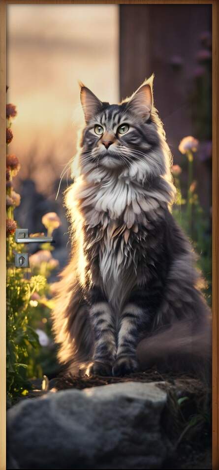 Explore a delicadeza e a beleza dos gatos Maine Coon com o Adesivo de Porta Gato Maine Coon em Jardim. Deixe-se encantar pela imponência e serenidade desse felino adorável, retratado em um jardim florido. Ideal para decorar sua porta e trazer um toque de natureza e amor pelos animais para o seu ambiente. Adquira já o seu e mergulhe nesse universo encantador!