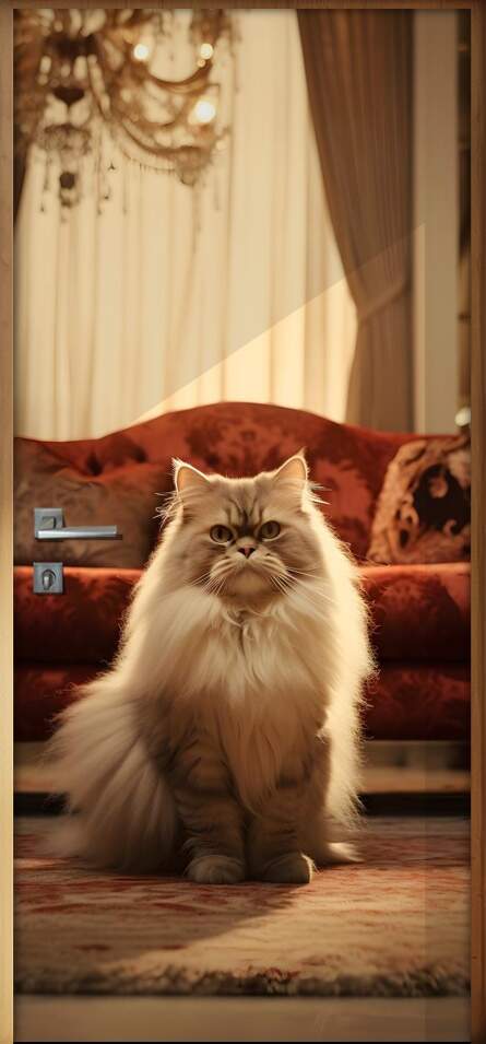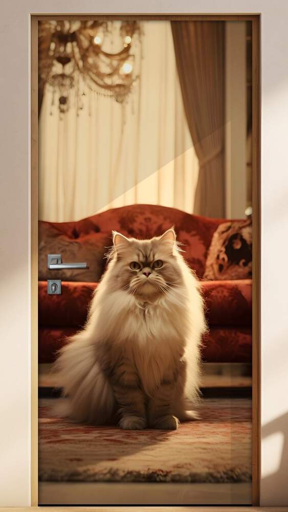 Adesivo de Porta Gato Persa em Ambiente Luxuoso