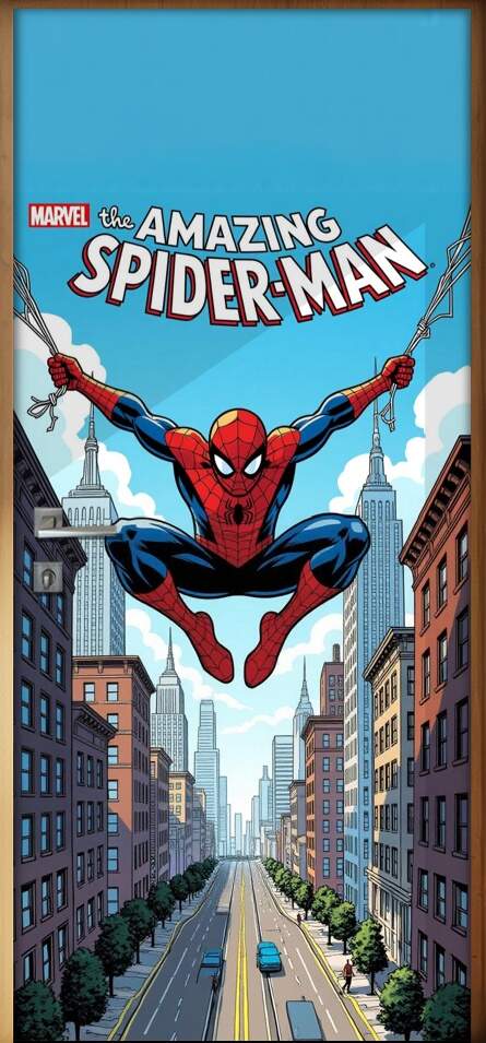 O exemplo mostrado é de uma porta com 90cm por 210cm, se sua porta tiver outra dimensão, não achatamos a imagem, porque isso a deixaria deformada, adaptaremos para encaixar em sua porta como neste exemplo