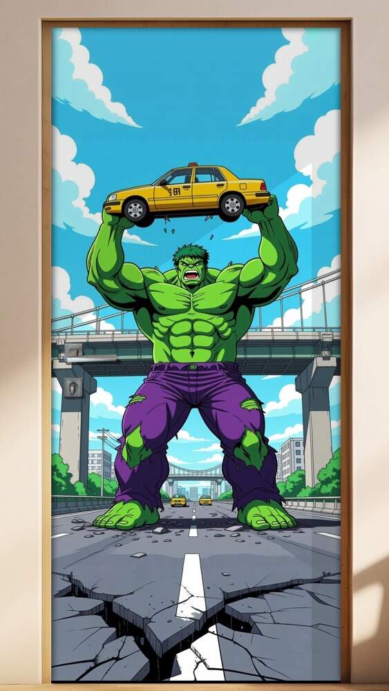 O exemplo mostrado é de uma porta com 90cm por 210cm, se sua porta tiver outra dimensão, não achatamos a imagem, porque isso a deixaria deformada, adaptaremos para encaixar em sua porta como neste exemplo