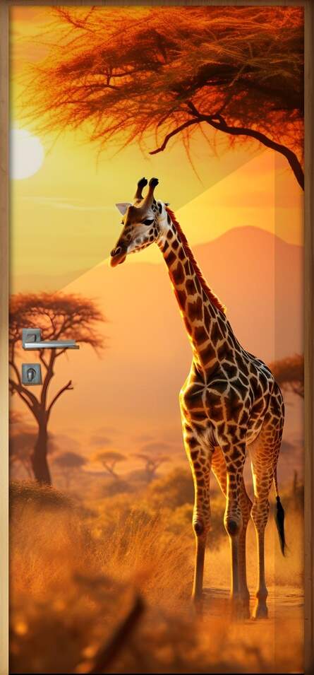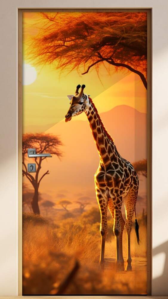 Adesivo de Porta Majestosa Girafa na África em Savana