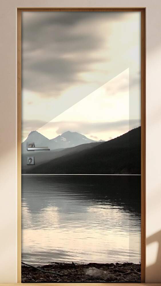 O exemplo mostrado é de uma porta com 90cm por 210cm, se sua porta tiver outra dimensão, não achatamos a imagem, porque isso a deixaria deformada, adaptaremos para encaixar em sua porta como neste exemplo