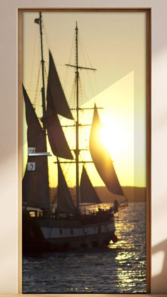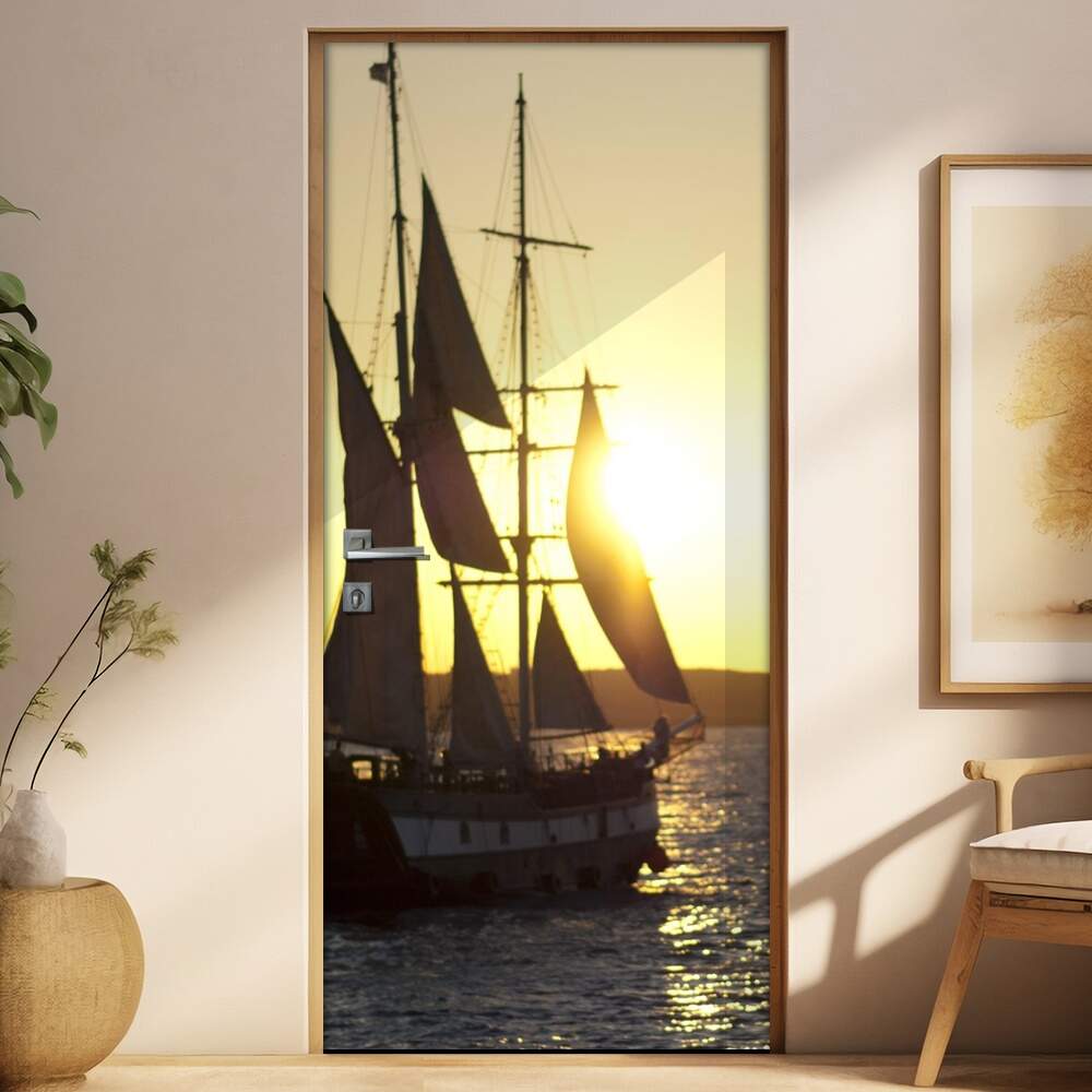 Adesivo Para Porta Pôr Do Sol Com Caravela
