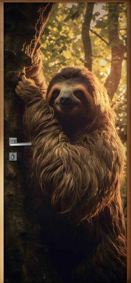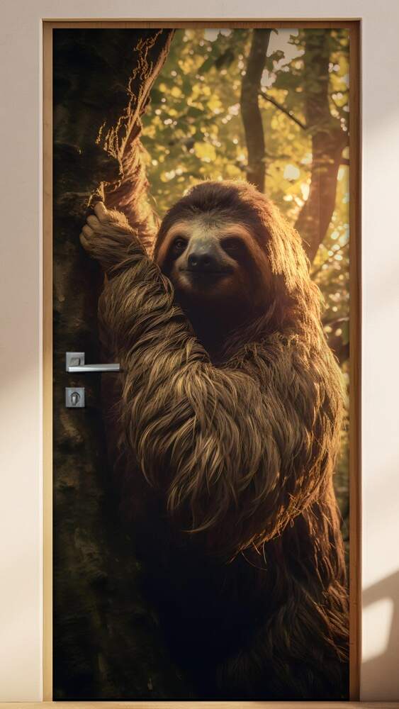 Adesivo de Porta Preguiça Gigante Empoleirada em Árvore