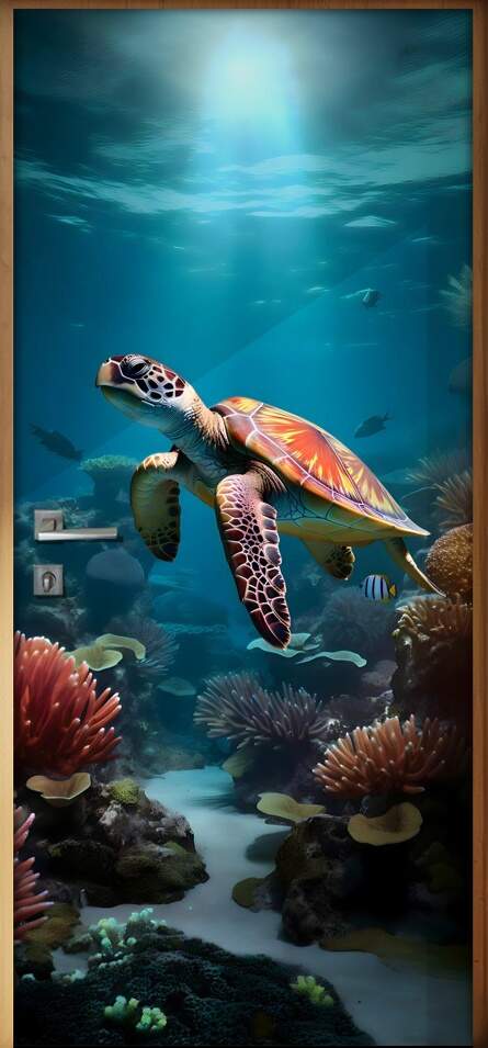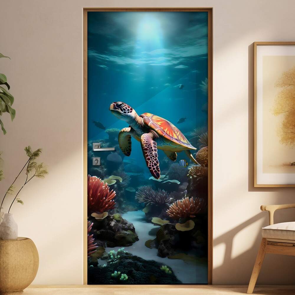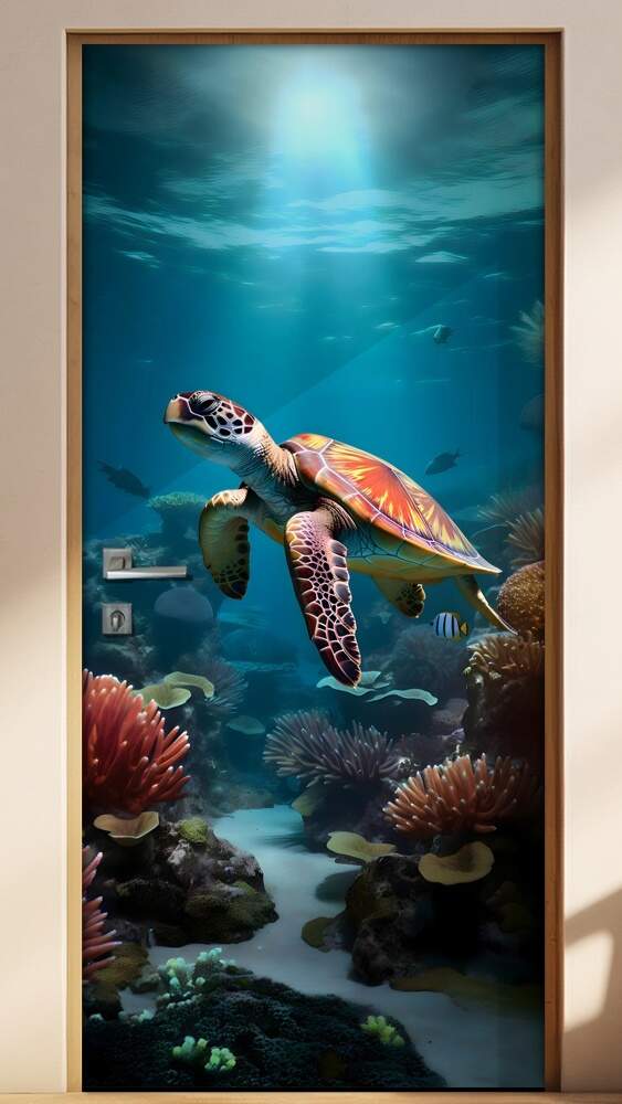 Traga a tranquilidade e a beleza do mundo subaquático para a sua casa com o Adesivo de Porta Tartaruga Nadando em Mar com Algas. As tartarugas marinhas são majestosas criaturas conhecidas por suas longas jornadas migratórias e carapaças fascinantes. Nade junto a elas em meio às coloridas algas e corais, inspirando-se com esse tema marítimo que traz um pedaço do oceano para o seu ambiente. Transforme sua porta em uma janela para o fundo do mar e mergulhe nessa atmosfera única. Ideal para quem busca conexão com a natureza e uma decoração cheia de personalidade. Adquira já o seu adesivo e deixe sua imaginação fluir em um oceano de possibilidades. Transforme seu espaço e mergulhe nessa experiência submarina sem sair do conforto do seu lar.