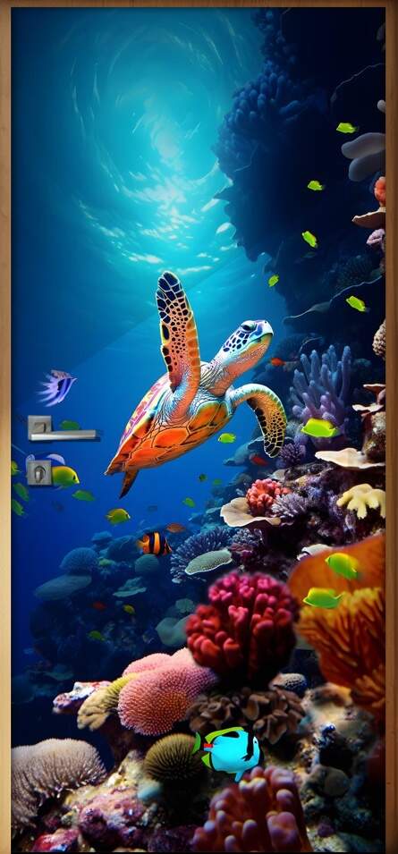 Adesivo de Porta Tartaruga Nadando em Oceano