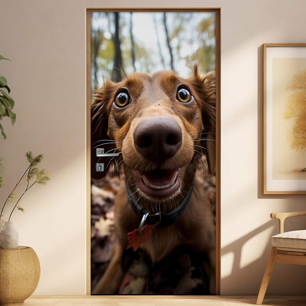 Adesivo Para Porta Cachorro Olhando Para Câmera