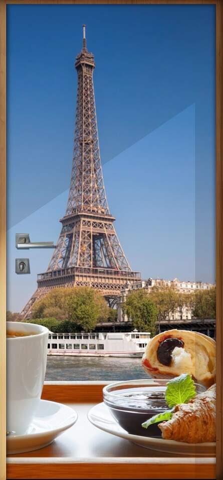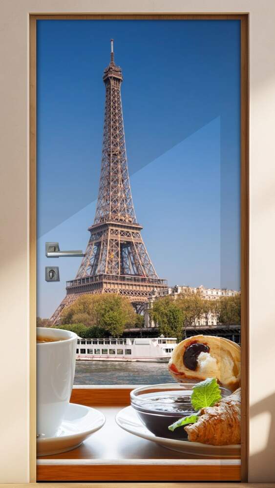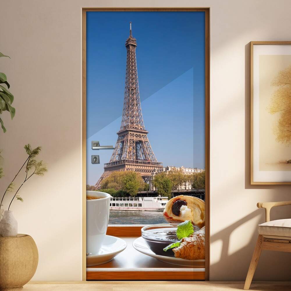 Adesivo Para Porta Café Da Manhã Em Frente A Torre Eiffel
