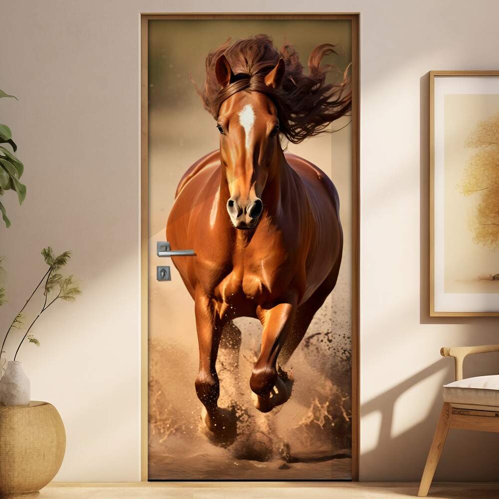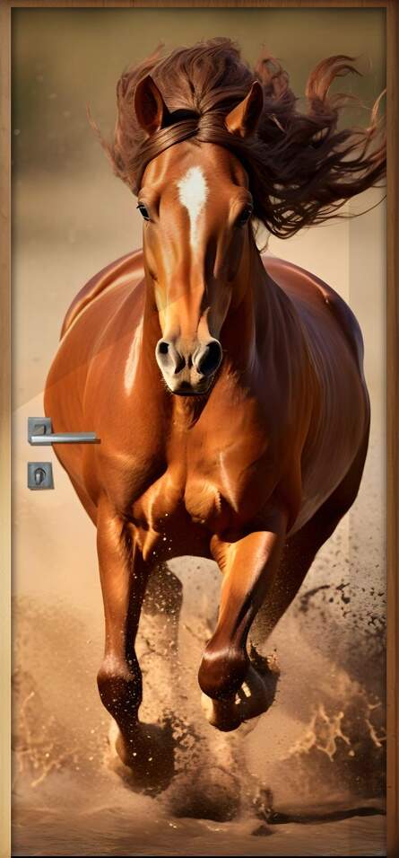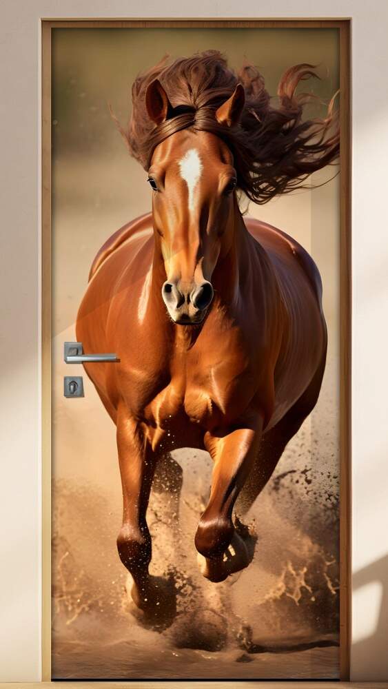 Este adesivo para porta apresenta a imagem de um cavalo correndo, simbolizando liberdade, força e beleza em movimento. Com sua crinas ao vento e a energia pura em seus olhos, o cavalo transmite uma sensação de majestade e espírito indomável. Adicione esse tema vibrante e dinâmico ao seu ambiente e deixe-se inspirar pela magnificência dos cavalos. Transforme sua porta em uma verdadeira obra de arte com este adesivo único e encantador.