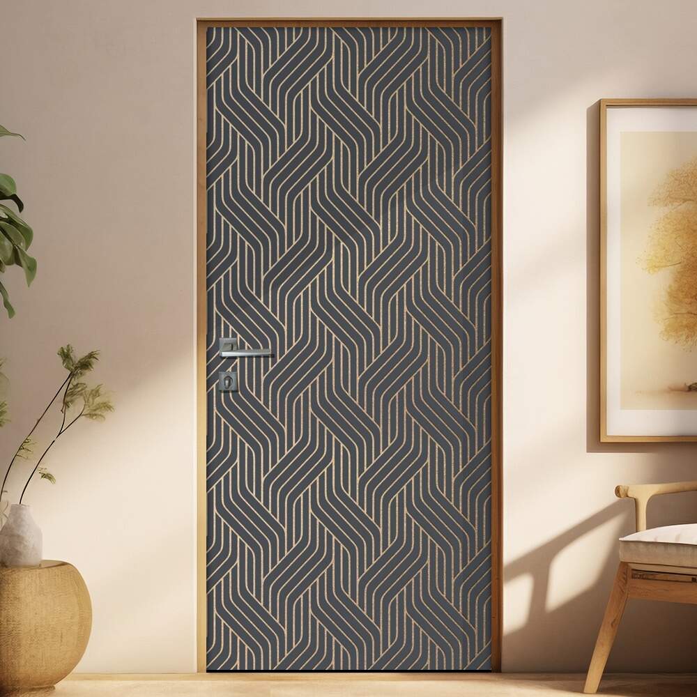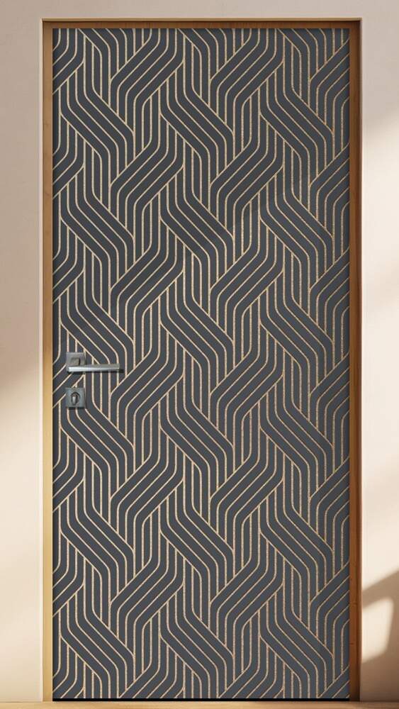 Adesivo Para Porta Cinza e Dourado Geometrica