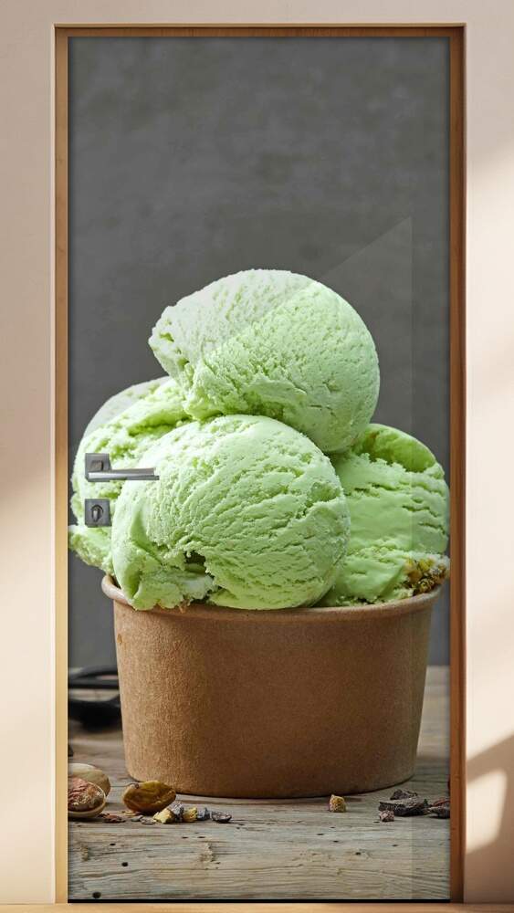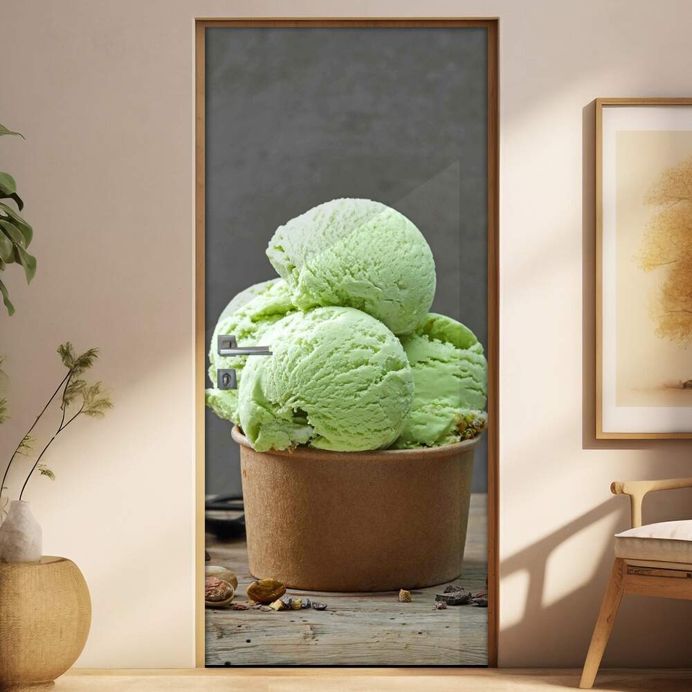 Transforme a porta da sua sorveteria com o nosso Adesivo para Porta Cozinha Sorvete ela ficará de cara nova em poucos minutos e super tematica. Adesivos para portas, adesivos para portas de cozinhas, adesivos decorativos para portas, sorveterias, bolas de sorvetes, fundo cinza.
