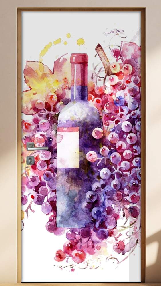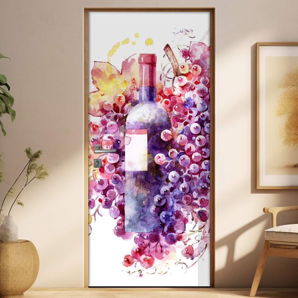 Adesivo Para Porta Cozinha Vinho Aquarela