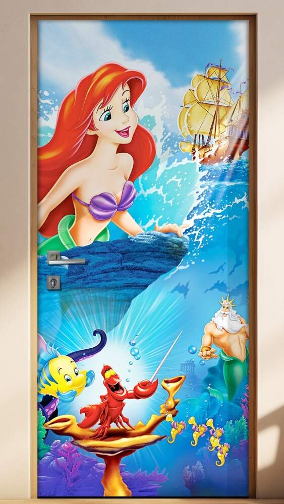 Sua filha está te pedindo um presente da Sereia Ariel o desenho favorito dela o nosso adesivo para porta Desenho Sereia Ariel e Turma é uma opção perfeita e ainda deixará o quartinho dela com uma decoração incrível. Adesivos para portas, decorações para portas infantis, decorações da sereia ariel.
