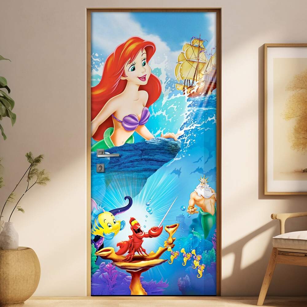Adesivo Para Porta Desenho Sereia Ariel E Turma