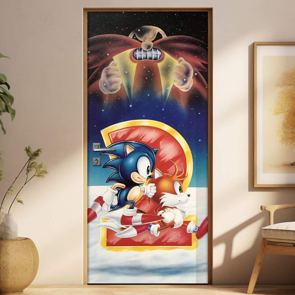 Com o nosso Adesivo Porta Desenho Sonic 2 você consegue transformar a decoração do quartinho do seu filho de uma forma super prática e rápida em poucos minutos. Adesivos para portas, adesivos decorativos para portas, adesivos decorativos infantis para portas, decorações infantis, fundo estrelado.