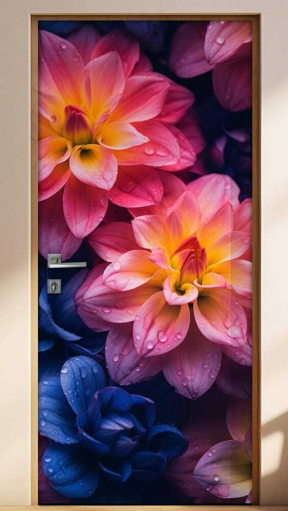 Adesivo Para Porta Detalhes de Flores Coloridas