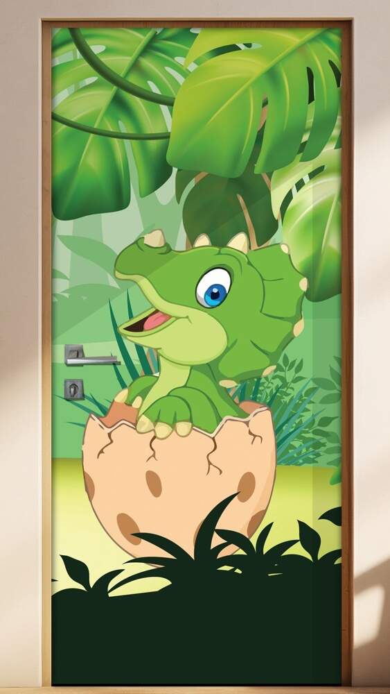 Adesivo para porta, dinossauro, baby, ovo quebrando, decoração infantil, brinquedoteca, adesivo decorativo, personalizado, diversão, criatividade, quarto infantil, ambiente lúdico, design exclusivo, qualidade, Fácil de aplicar, transformação do ambiente, imaginação, detalhes encantadores.