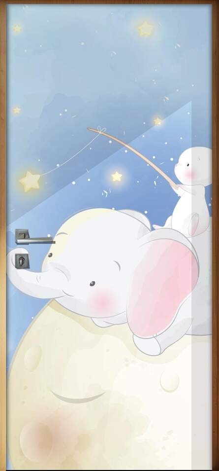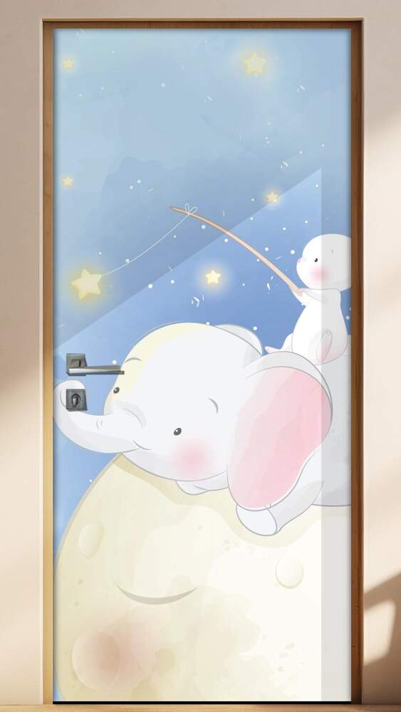 Adesivo Para Porta Elefantinho E Coelho Na Lua