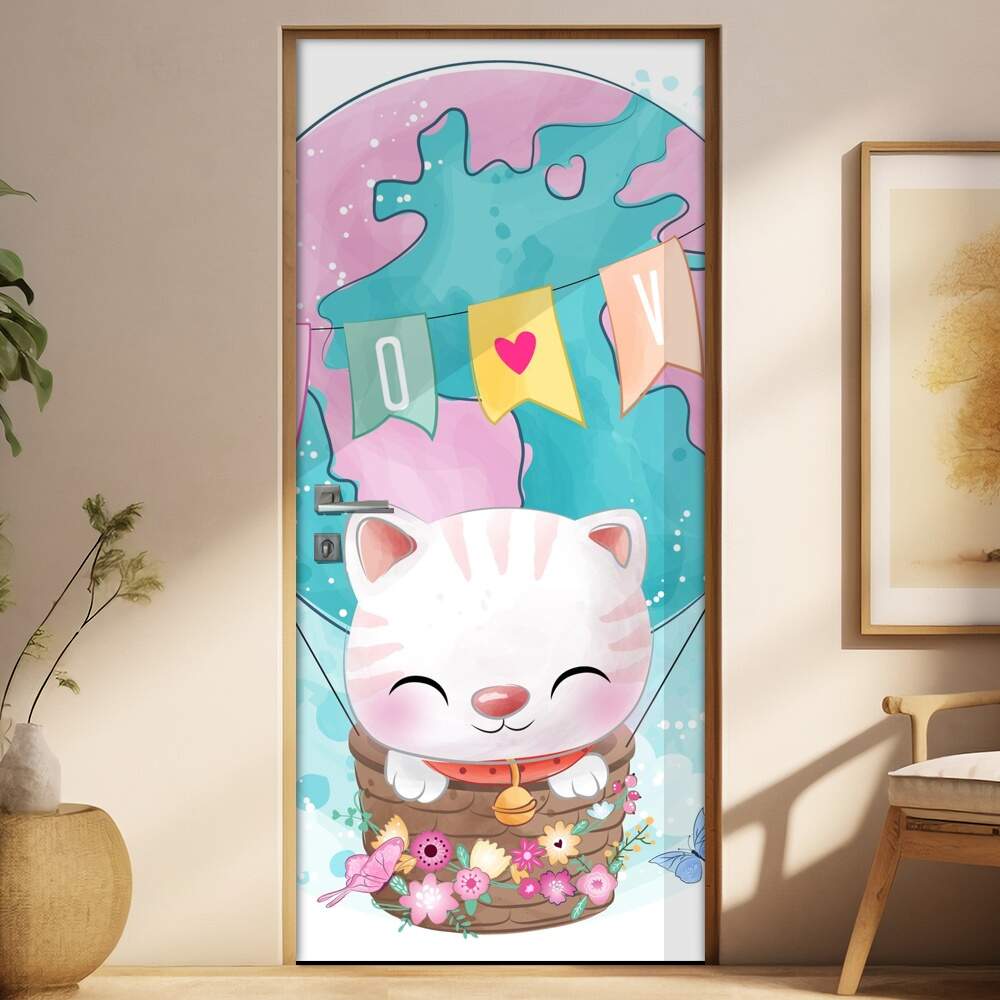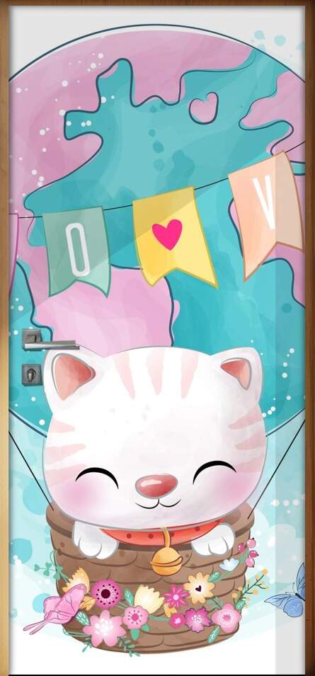 O exemplo mostrado é de uma porta com 90cm por 210cm, se sua porta tiver outra dimensão, não achatamos a imagem, porque isso a deixaria deformada, adaptaremos para encaixar em sua porta como neste exemplo