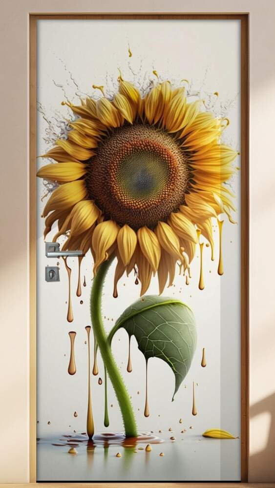 Adesivo Para Porta Girassol com Efeito de Tinta