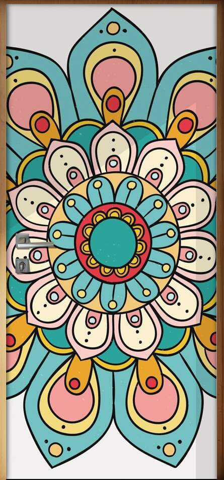 Encontre Adesivo Para Porta Jateado Impresso Mandala Azul Amarelo Rosa em nosso site com ótimos preços, ótima qualidade e preço incrível. Aproveite