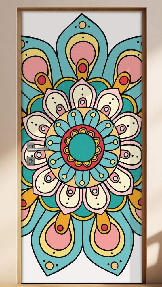 Adesivo Para Porta Jateado Impresso Mandala Azul Amarelo Rosa