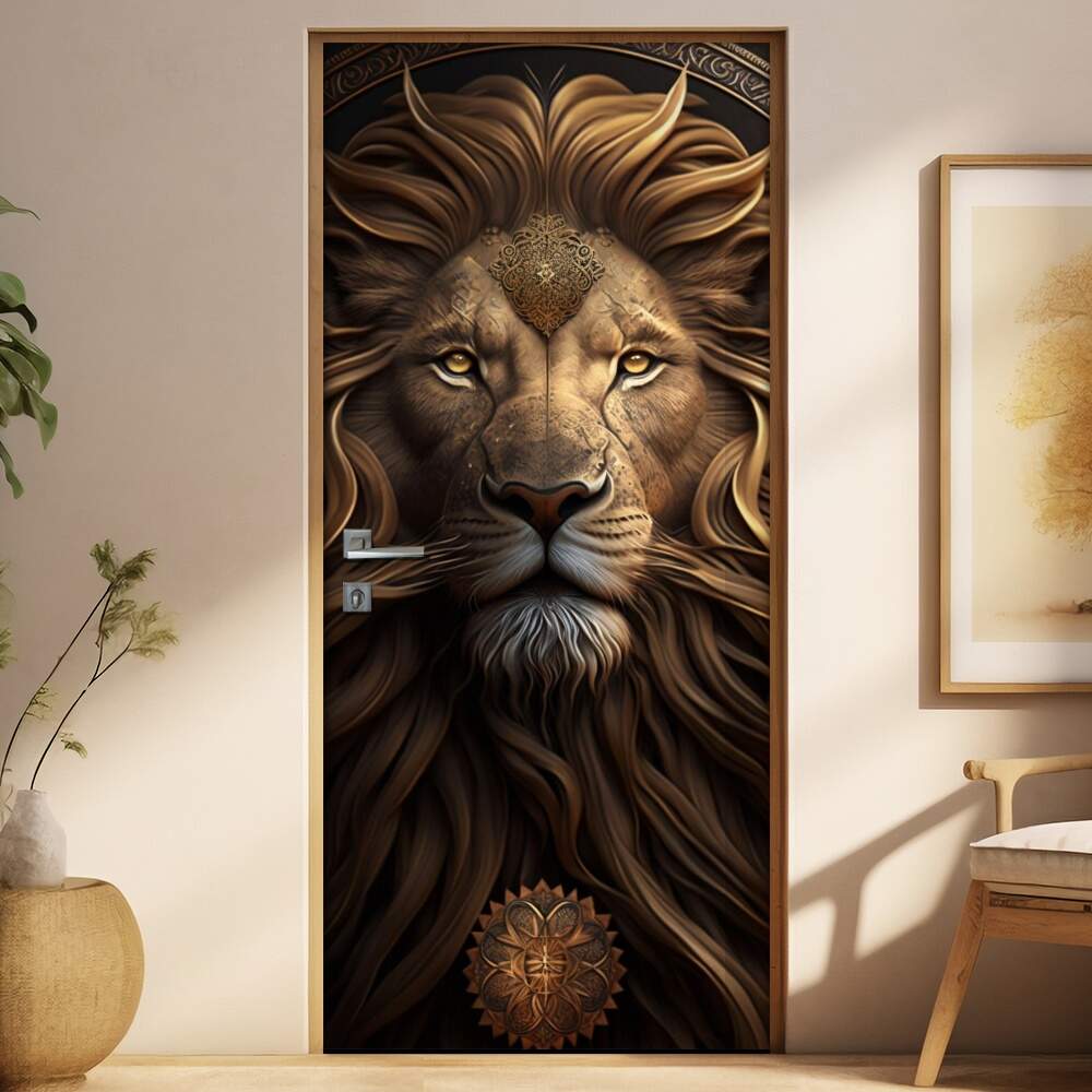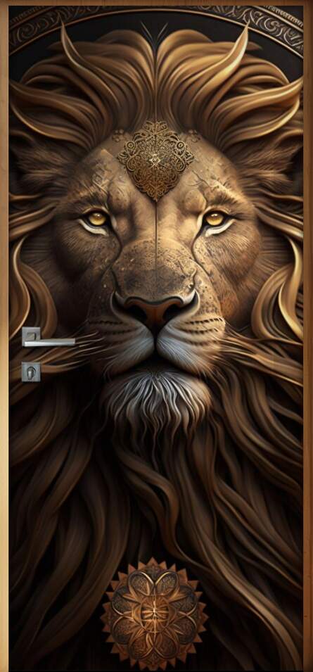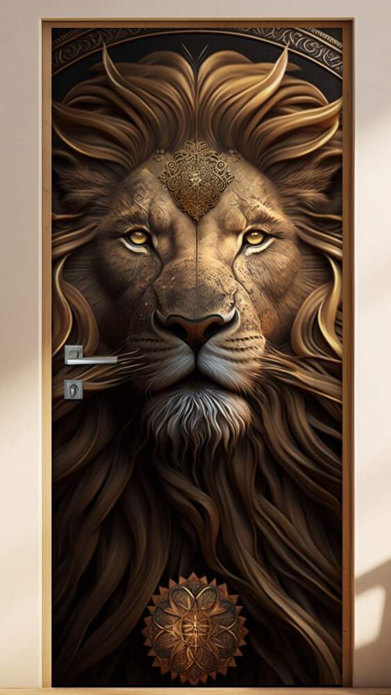 Adesivo Para Porta Leão Estilo Pintura