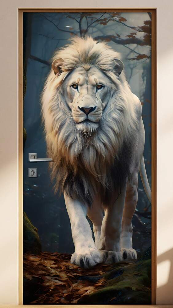 Adesivo Para Porta Leão Todo Branco Majestoso Caminhando