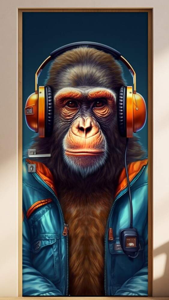 Adesivo Para Porta Macaco com Fones de Ouvido Azul
