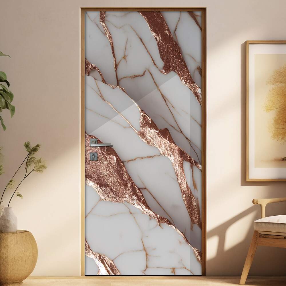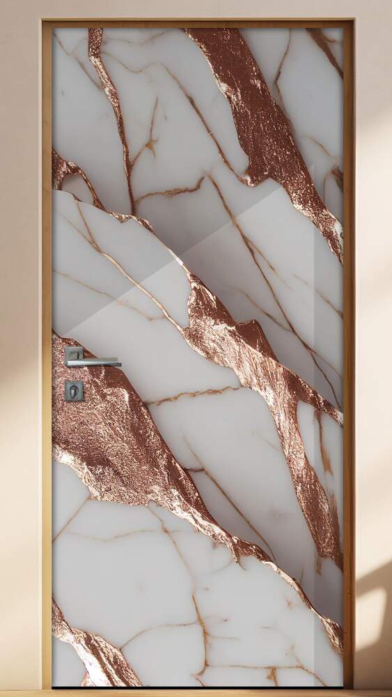 Adesivo para Porta Marmore Branco e Rose