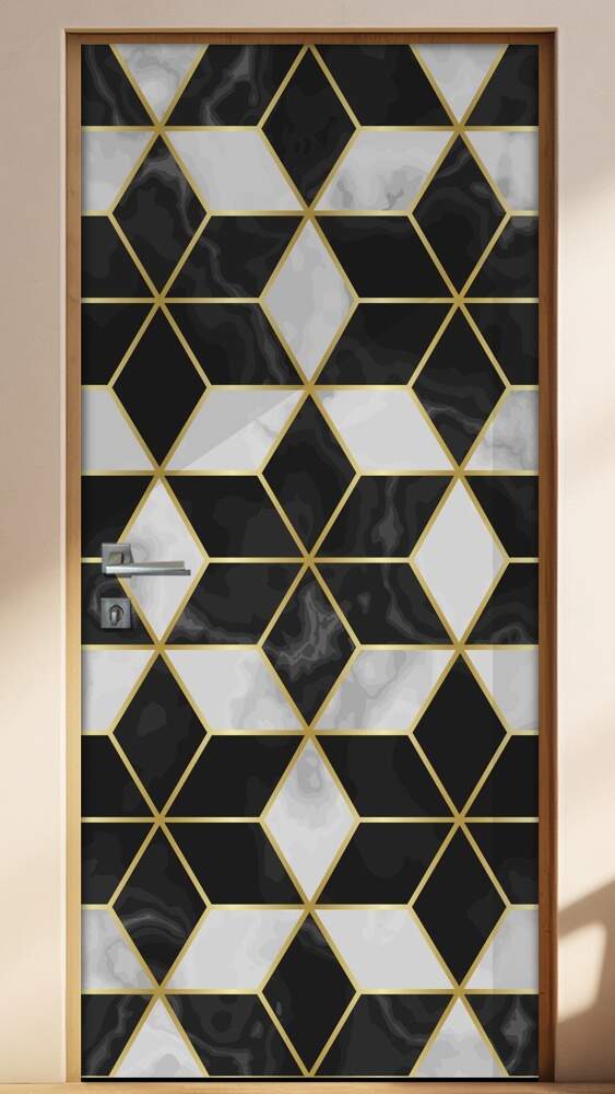 Adesivo para Porta Marmore Preto e Branco Geométrico