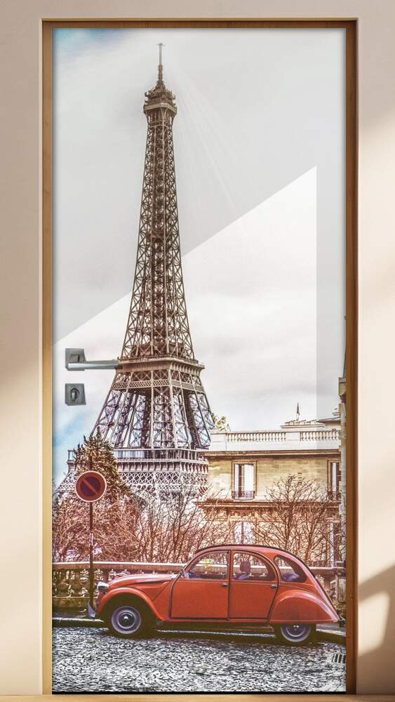 Adesivo para Porta Paisagem 47 Torre Eiffel com Fusca