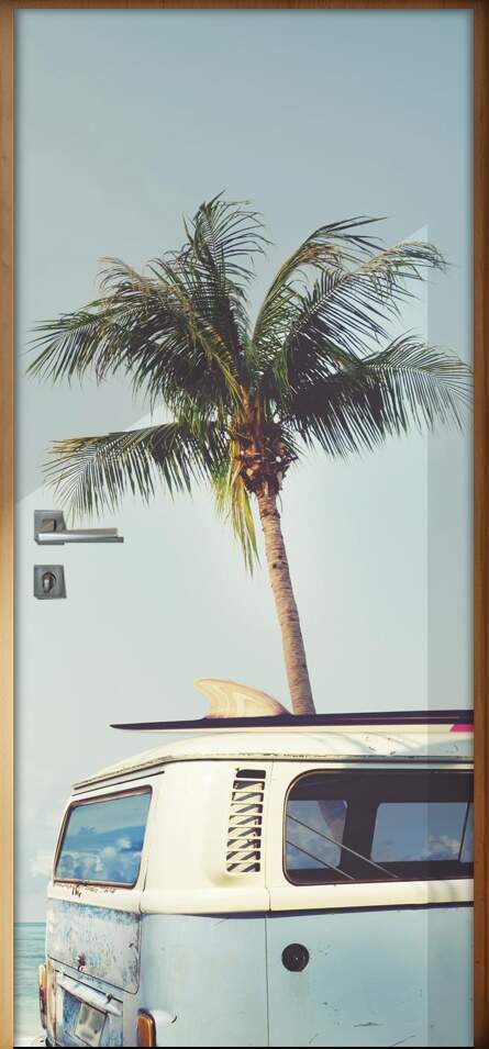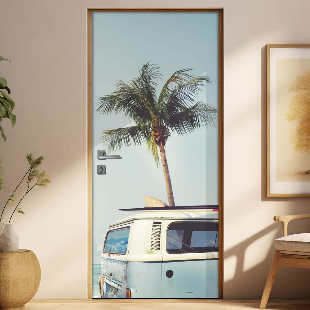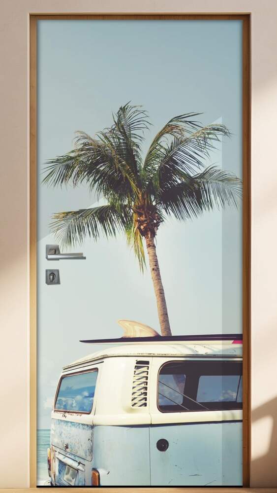 Adesivo para Porta Paisagem 48 Coqueiro e Kombi