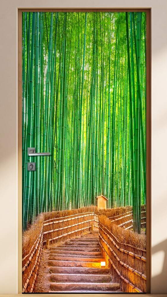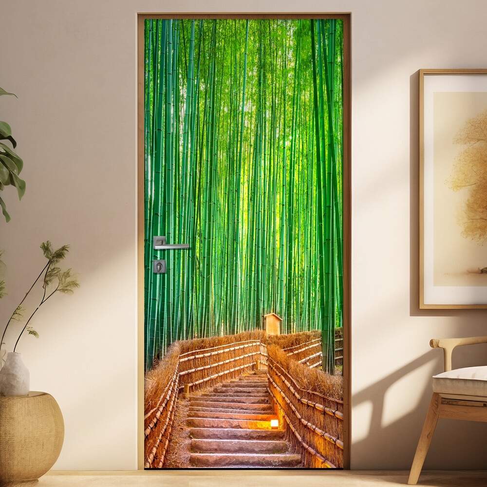 Adesivo para Porta Paisagem 52 Escadas e Bambus