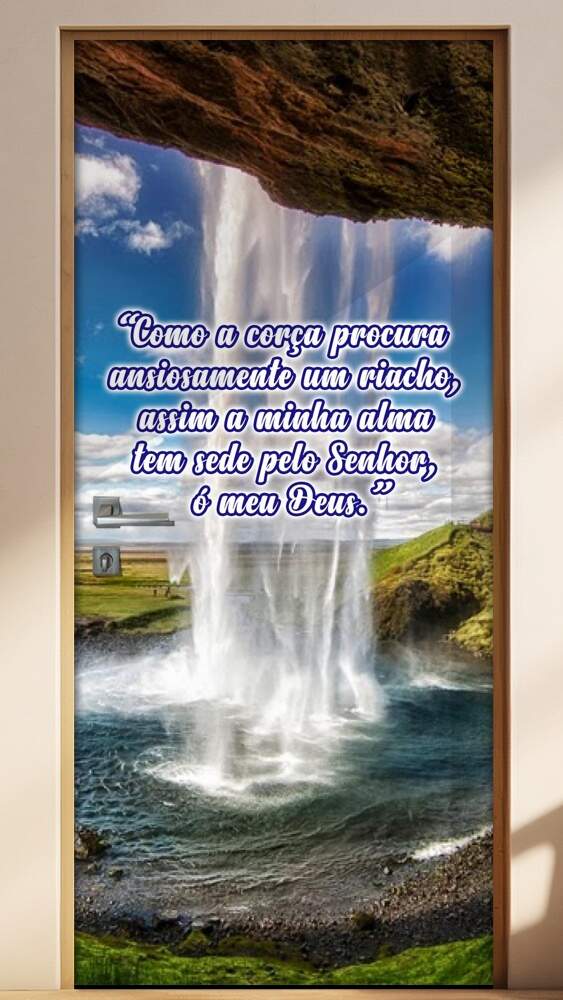 Desperte a sensação de paz e tranquilidade em seu ambiente com o adesivo para porta paisagem com Salmo 42. Transforme a entrada da sua casa em um verdadeiro refúgio, decorando com esta bela paisagem que traz consigo palavras reconfortantes. Feito com material de alta qualidade, este adesivo é de fácil aplicação e limpeza. Adicione um toque de serenidade ao seu lar com este adesivo único e inspirador. Ideal para quem busca harmonia e beleza na decoração. Aproveite para criar um ambiente acolhedor e cheio de significado.