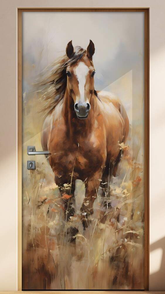 Transforme sua porta em uma verdadeira obra de arte com o Adesivo Para Porta Pintura de um Cavalo. Este adesivo traz a força, beleza e elegância dos cavalos, símbolos de liberdade e poder. A pintura retrata a essência e energia desses majestosos animais, com sua crina ao vento em um cenário que transmite serenidade. Renove o ambiente e traga toda a simbologia e beleza dos cavalos para dentro da sua casa com esse adesivo exclusivo da Fran Adesivos.