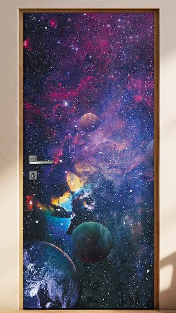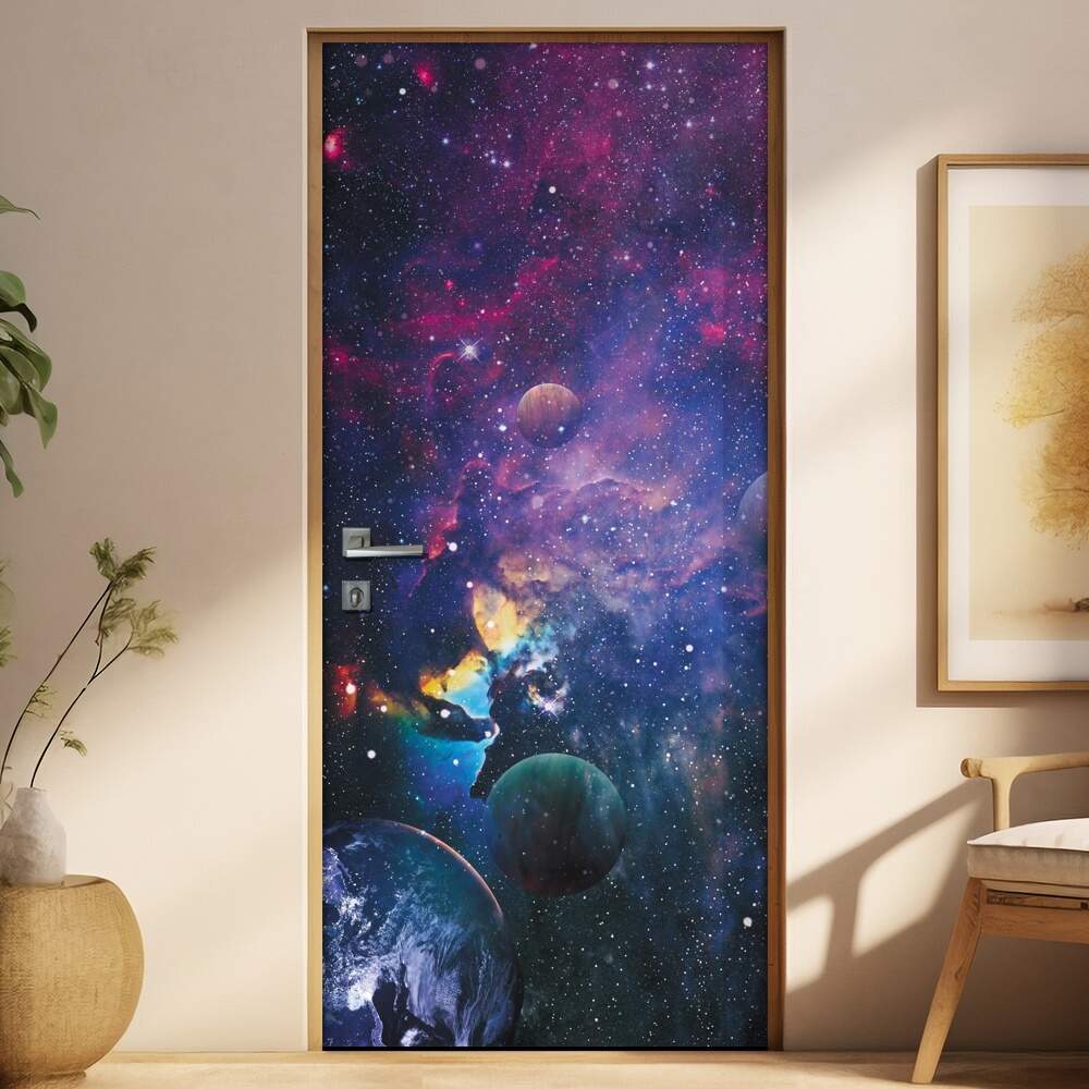 Já imaginou o quanto sua porta ficará maravilhosa com o nosso adesivo de porta Planetas no Espaço com esse design super brilhante como o universo. Adesivos de portas, adesivos decorativos para portas, planetas no espaço, decorações do espaço, universo, planetas, estrelas.