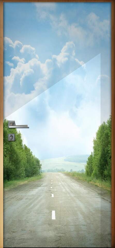O exemplo mostrado é de uma porta com 90cm por 210cm, se sua porta tiver outra dimensão, não achatamos a imagem, porque isso a deixaria deformada, adaptaremos para encaixar em sua porta como neste exemplo